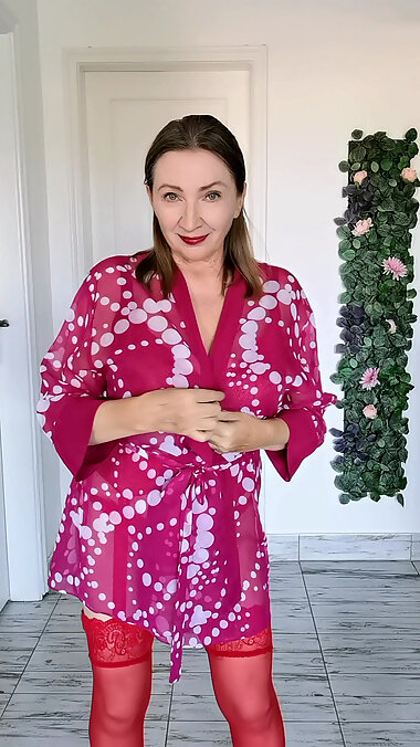 "Granny in stockings and high heels shoes play with mature pussy"