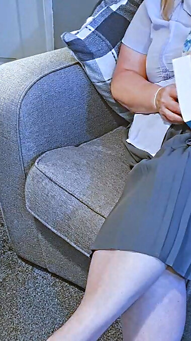 "Mature stepmom is filmed alone at home waiting for company"