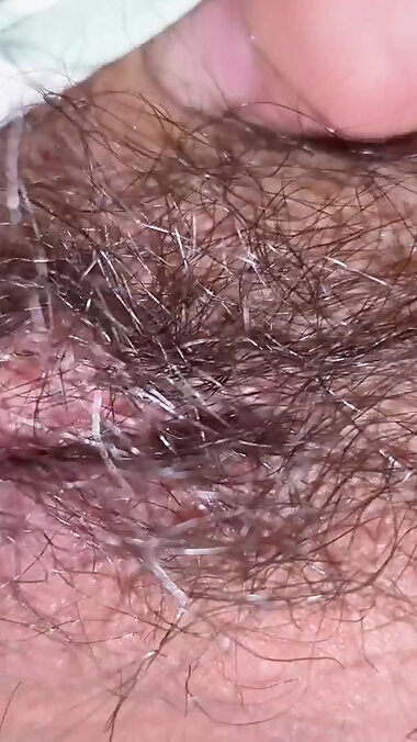 "Stepmom with big hairy pussy. Fucks with her legs open and Creampie."
