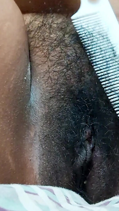 "Indian hot sexy aunty comb her hairy pussy then doing unlimited orgasam in bedroom without dress and panties"