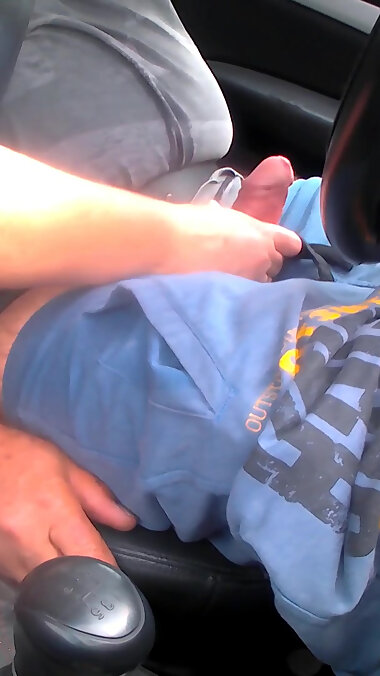"Horny mature wife flashes and rubs her wet pussy in the car in public"