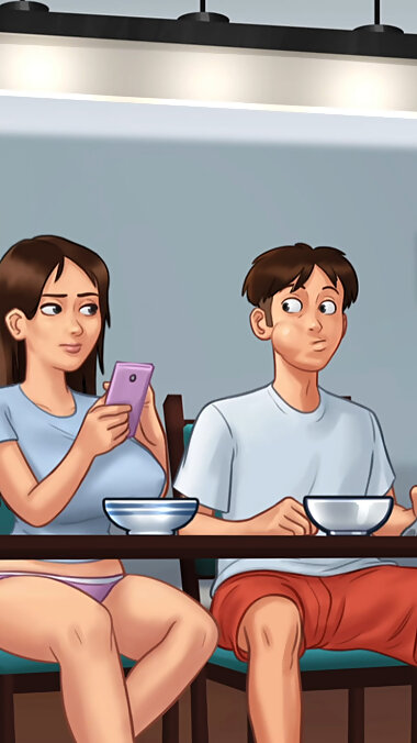 "Horny MILF Landlady Caught Sucking off Huge Dick under the table Next To His GF - Summertime Saga"