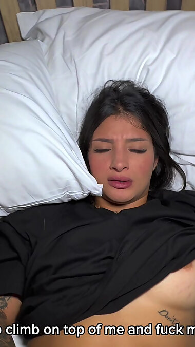 "Busty stepmom shares a hotel bed with her shameless stepson by mistake."