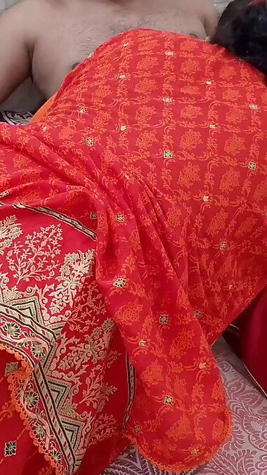 "Her stepson, who comes from India, fucks her married wife. The cuckold is standing right next to her and doesn't notice."