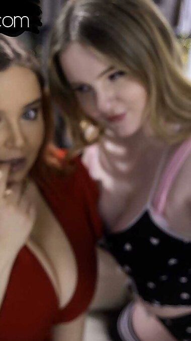 "Blonde Stepmom Seduces Redhead Stepdaughter and Fucks Her While Her Husband Takes a Shower"