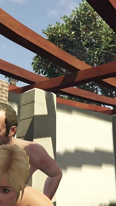 "Tracey De Santa have sex with trevor in her neighbor's backyard"