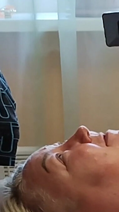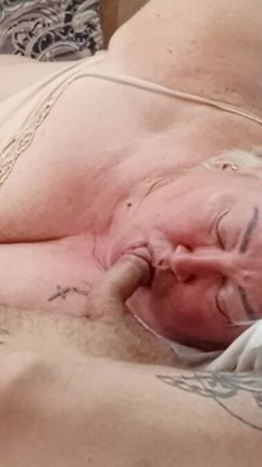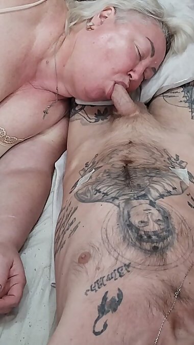 "Mother-in-law sucks my swollen cock before work to get a surprise in her mouth"