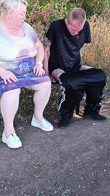 "Mother-in-law in a public park jerks off my dick until I cum"