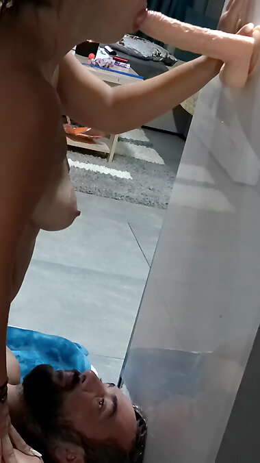 "Sucking Dildo While swallow spit , Spitting Humiliation"