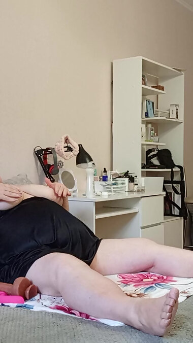 "Loneliness of stepmom brightened up by big sex toys in pussy"